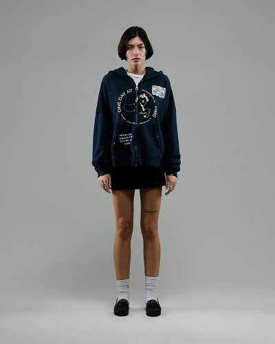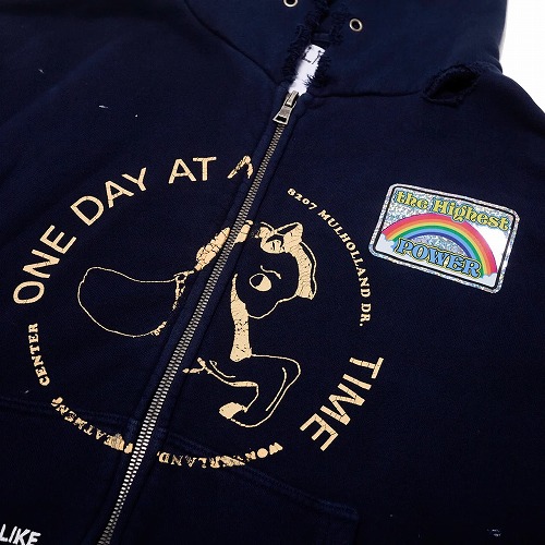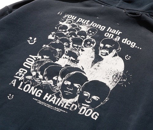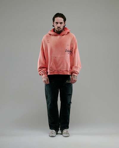 このブランドは、ディストレス加工を施したTシャツ、スウェットシャツ、手編みのセーターが特徴。