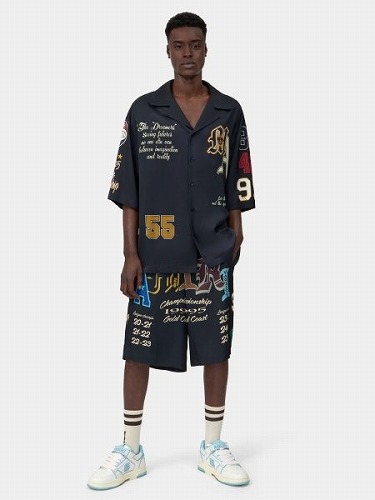 AMIRI VARSITY PATCH OVERSIZED CAMP SHIRT/AMIRI VARSITY PATCH SHORT