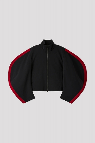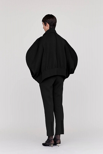 ソリッドなミラノリブのブルゾン。大きな円形のシルエットを縁取るパイピングが、大胆で印象的なフォルムを引き立てます。中綿入りで総裏仕様のため、暖かな着心地を叶えます。