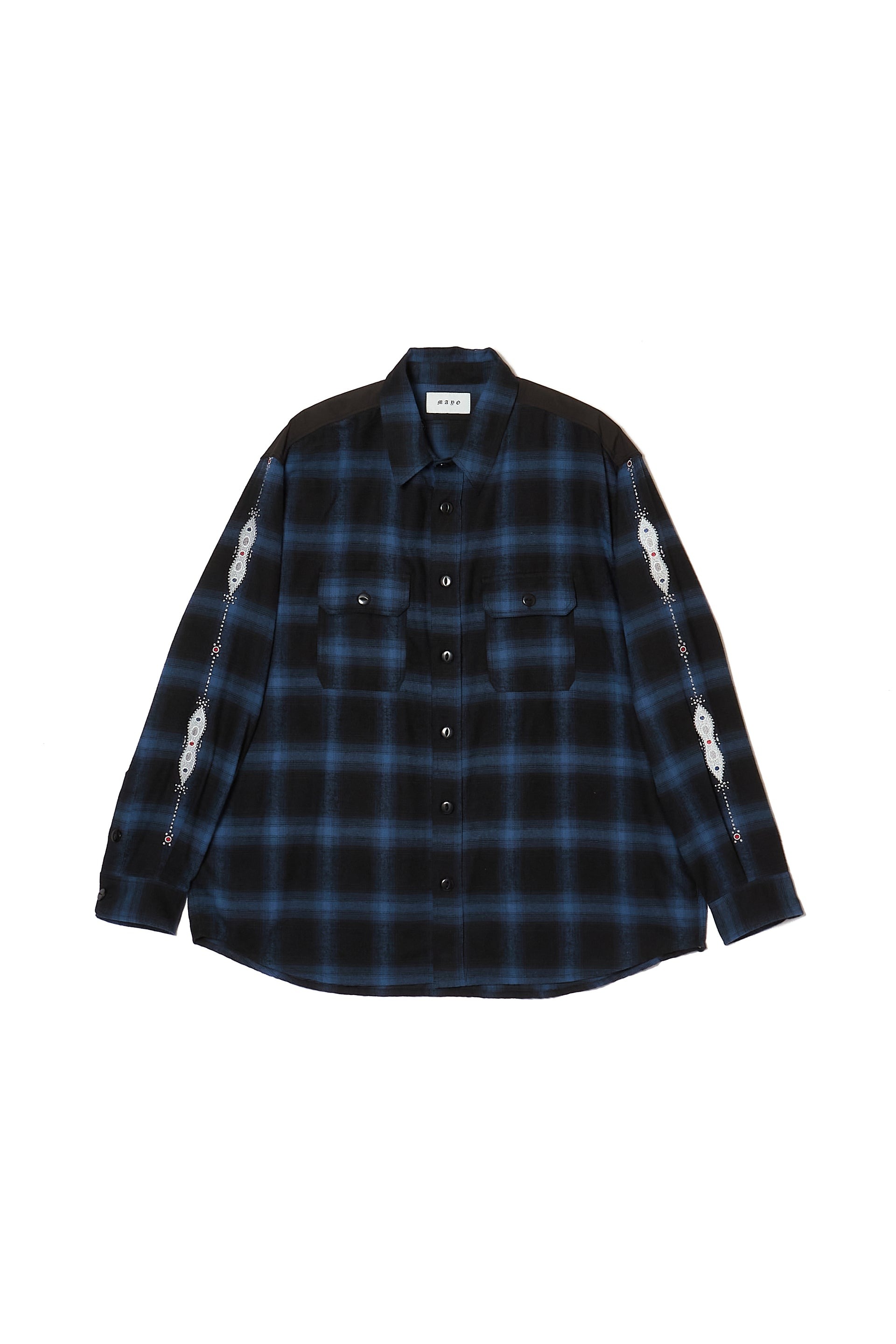 MAYO STUD LOOK EMBROIDERY CHECK SHIRT BLUE [mayo065]