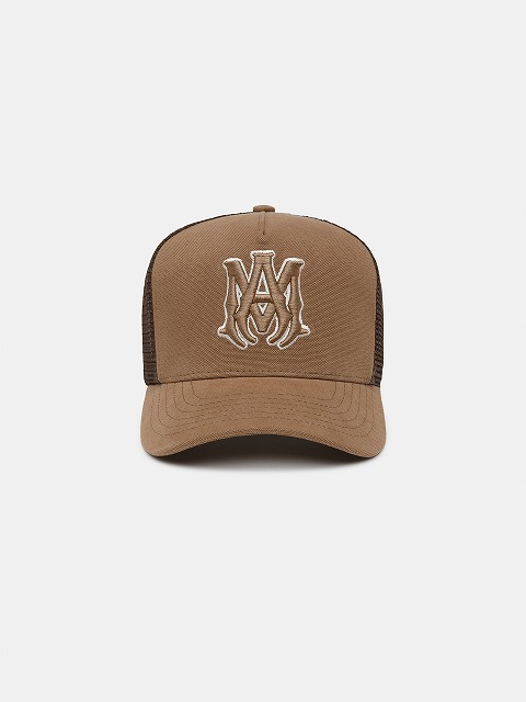 MA アウトライン トラッカー ハットには MA アイコンが刺繍されており、湾曲したつば、刺繍アイレット、