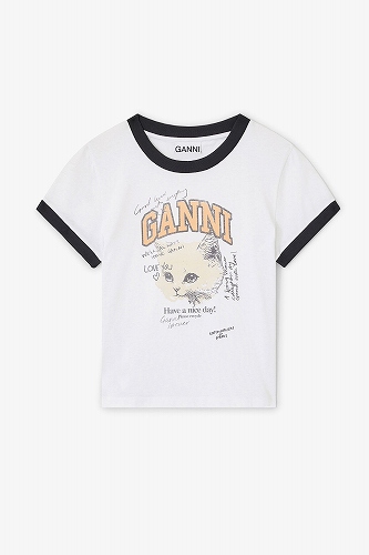 GANNI ガニー White Cropped Kitty T-shirt [GN283]