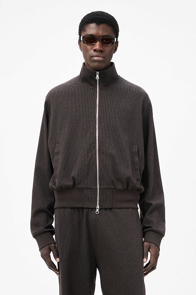 トラックアンドフィールドピンストライプのモブジャケット。綿、ポリエステル、ウール、ポリアミドを織り合わせたポルトガル製の生地で作られたメンズモブジャケットは、レギュラーストレートフィットで、ファンネルネック、ツーウェイRiRiジッパー、リブ編みの袖口と裾、フロントのウェルトポケット2つが特徴です。