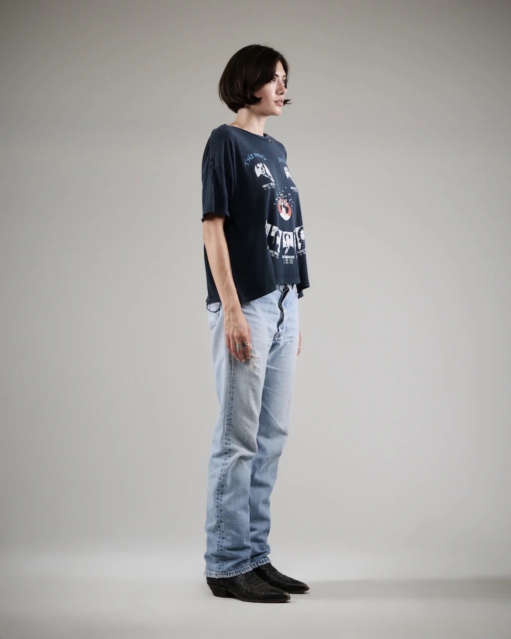 フロントに本物の風合いのプリントグラフィックとラインストーンのアクセント