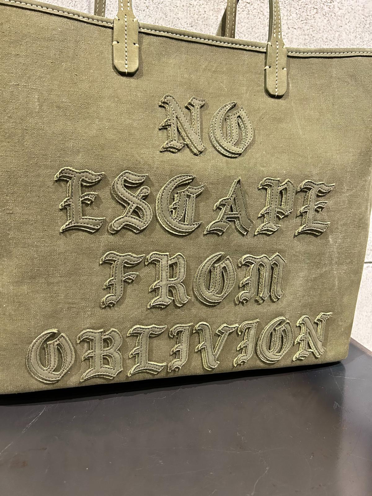 反戦のメッセージと共に、使い捨てにされるヴィンテージダッフルバッグやテントに新たな価値を与えることにより、大量生産に対するメッセージを込めている。