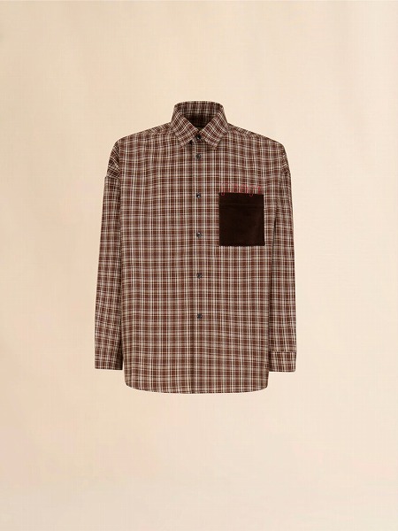 グレイン・ド・プードルウール製チェック柄の長袖シャツ。 ボタン留めのボクシーフィット。 コントラストカラーのベルベット製胸ポケットとマルニメンディングロゴ。