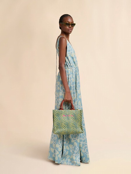 MARNI グリーン 波模様のラフィアエフェクト スモールトートバッグ [marni499]