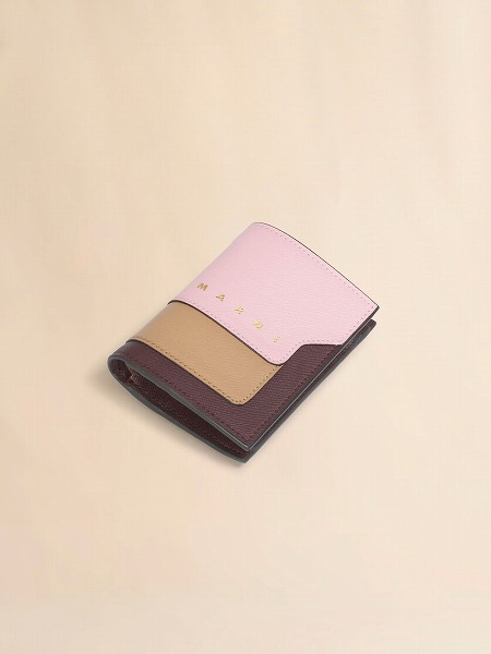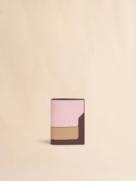 MARNI ピンク ライトブラウン ダークブラウン サフィアーノレザー製二つ折りウォレット [marni503]