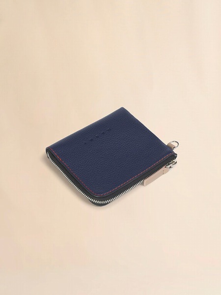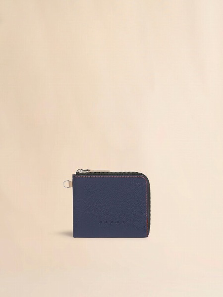 MARNI ブルー レザー製ラウンドファスナーウォレット、コントラストステッチ入り [marni511]