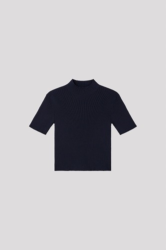 タイトフィットなモックネックのショートスリーブトップ。