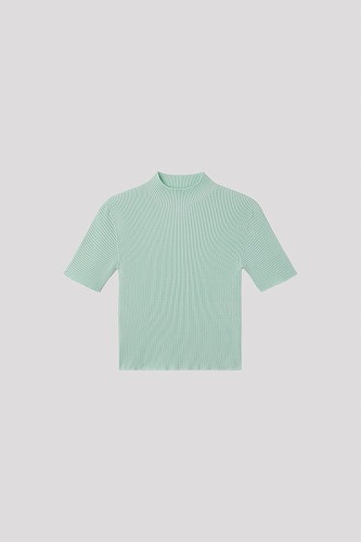 タイトフィットなモックネックのショートスリーブトップ。