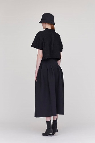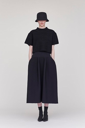 3Dコンピューター・ニッティングの技術を中核に据え、タイムレスな服を提案する。