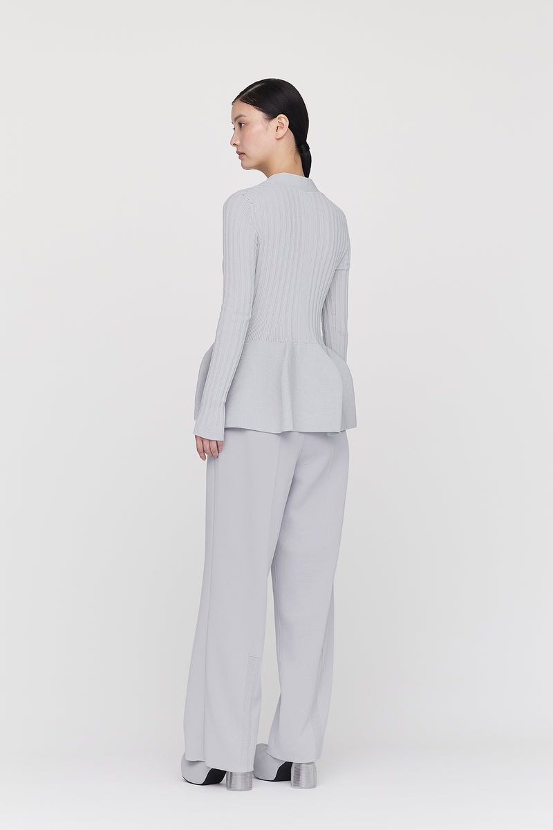 タイトにフィットする身頃と、コンピュータープログラミングによって作られた構築的なシルエットが印象的なデザインです。