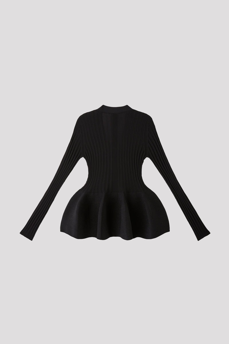 ペプラムにはラメ糸を編み込み、華やかな雰囲気を演出しています。縫代がなく、ストレッチ性に優れ、快適な着心地です。