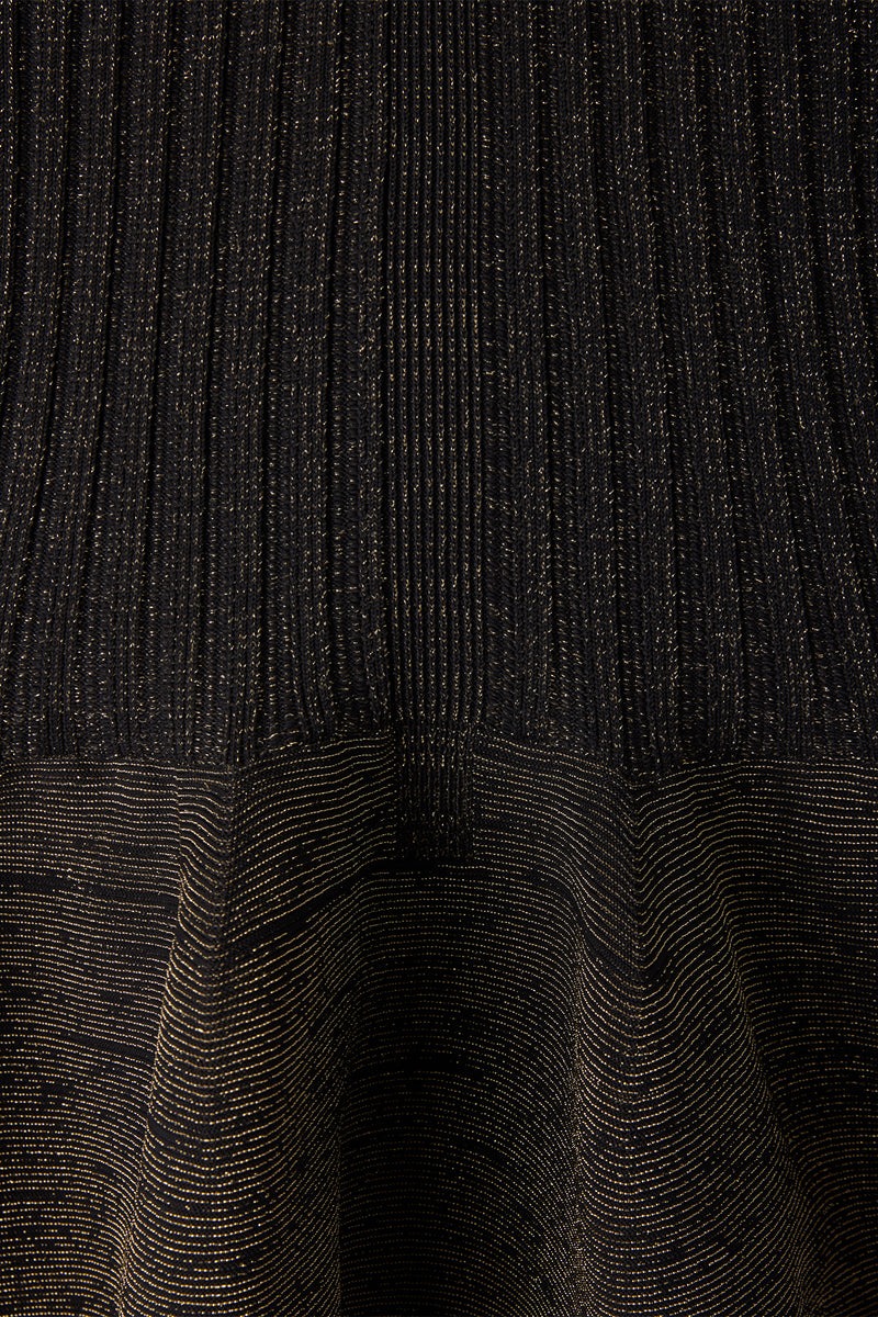 ラメ糸を全面に編み込み、華やかな雰囲気を演出します。縫代がなく、ストレッチ性に優れ、快適な着心地です。