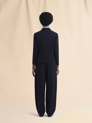 3つボタンクロージャー、フラップポケット。バックに切り込み。