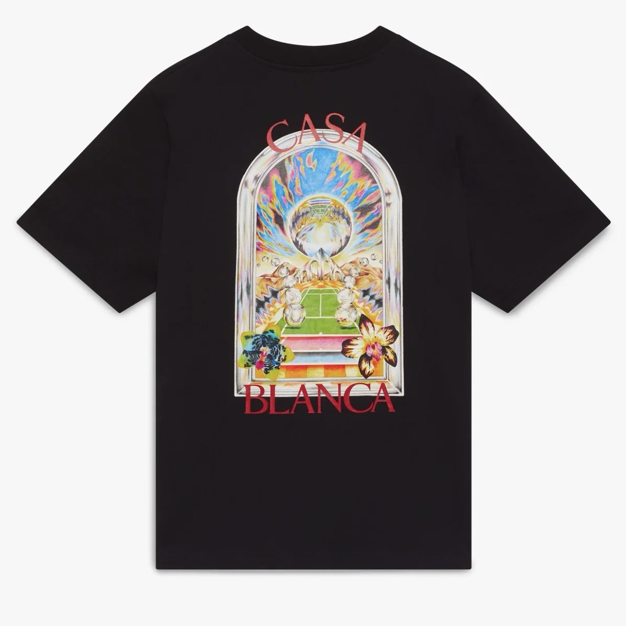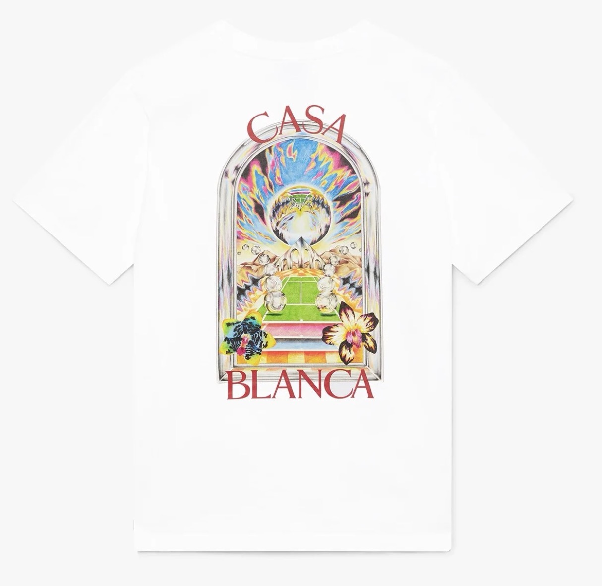 CASABLANCA White Tennis Landscape Short Sleeve T‑Shirt [casa110]