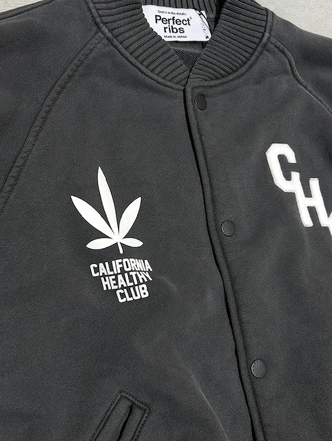 【Perfect ribs®︎×A LOVE MOVEMENT】"CALIFORNIA HEALTHY CLUB" Award jacket / Fade Black