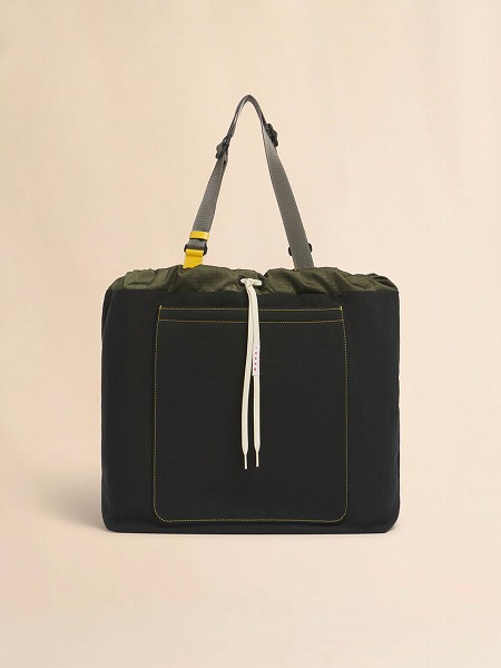 コントラストカラーのリップストップディテールとレザートリムをあしらった、North/South テクニカルファブリック製のトートバッグ。 調節可能なユーティリティテープ製ツインハンドル。 マルニラペルを施したドローストリング開閉式。 フロントにオープンポケット。 内側にオープンポケットとマルニパッチ。