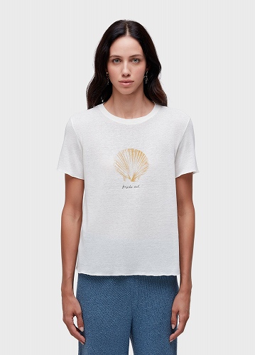 リネンビスコースジャージーのレディースTシャツ。ストレートシルエット。