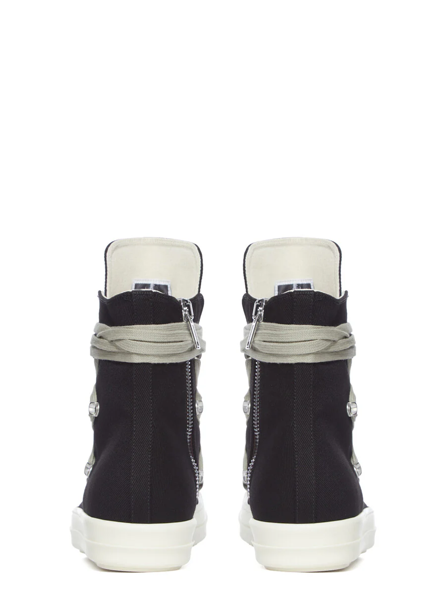 このMEGALACE®スニーカーは足首より上の丈で、7つのアイレット、MEGALACE®のディテール、着脱しやすい内側の足首部分のジッパー、トゥキャップ、シャークトゥースソールが特徴です。
