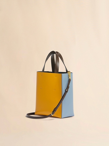 MARNI ブルー、オレンジ&ダークブラウン レザー製 Museo ミニバッグ [marni527]