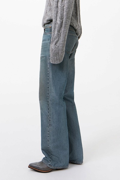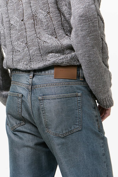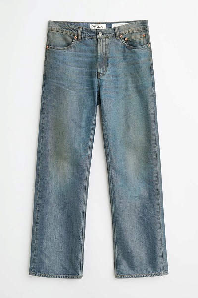 カールソンカットの金継ぎウォッシュ。イタリア製のオーガニックコットンとポリエステル混紡デニムを使用したカールソンカットは、ハイウエスト、ストレートヒップ、ややブーツカットのシルエットで、長めの丈が特徴です。5つのポケット、スチール製リベット、ジップフライ、そして「Our Legacy」のエンボス加工パッチがあしらわれています。